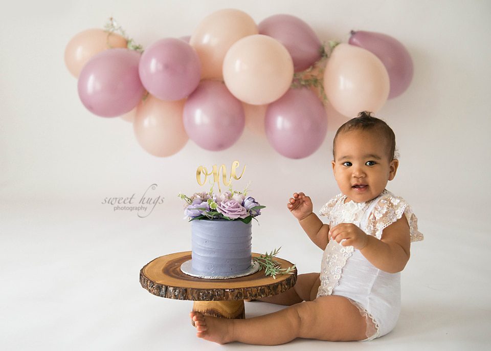 Happy 1st Birthday to Eliana! Her Mom requested mute colours: pink and purple balloons set up. The cake was ordered from Whimsical Cakes and was beautifully decorated with some flowers on top. Love simple set ups, so we can focused on the birthday person more. Less is more!