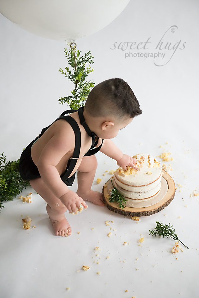 Your child’s first year goes so fast. What would be more fun than celebrating their birthday with a custom cake smash and first birthday photo session?! Your child’s session will include a custom design that we plan together! Ty celebrated his first birthday with a cake smash. His Mom asked for a simple cake smash set up, which are my favorites. Her friend made the beautiful naked cake. Look how beautiful it turned out! And we left the rest to TY! He had a blast! Enjoy!!!